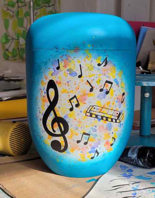 Ich unterstütze dich oder euch dabei, die Urne oder den Sarg selbst zu bemalen. Mehr dazu findest du hier